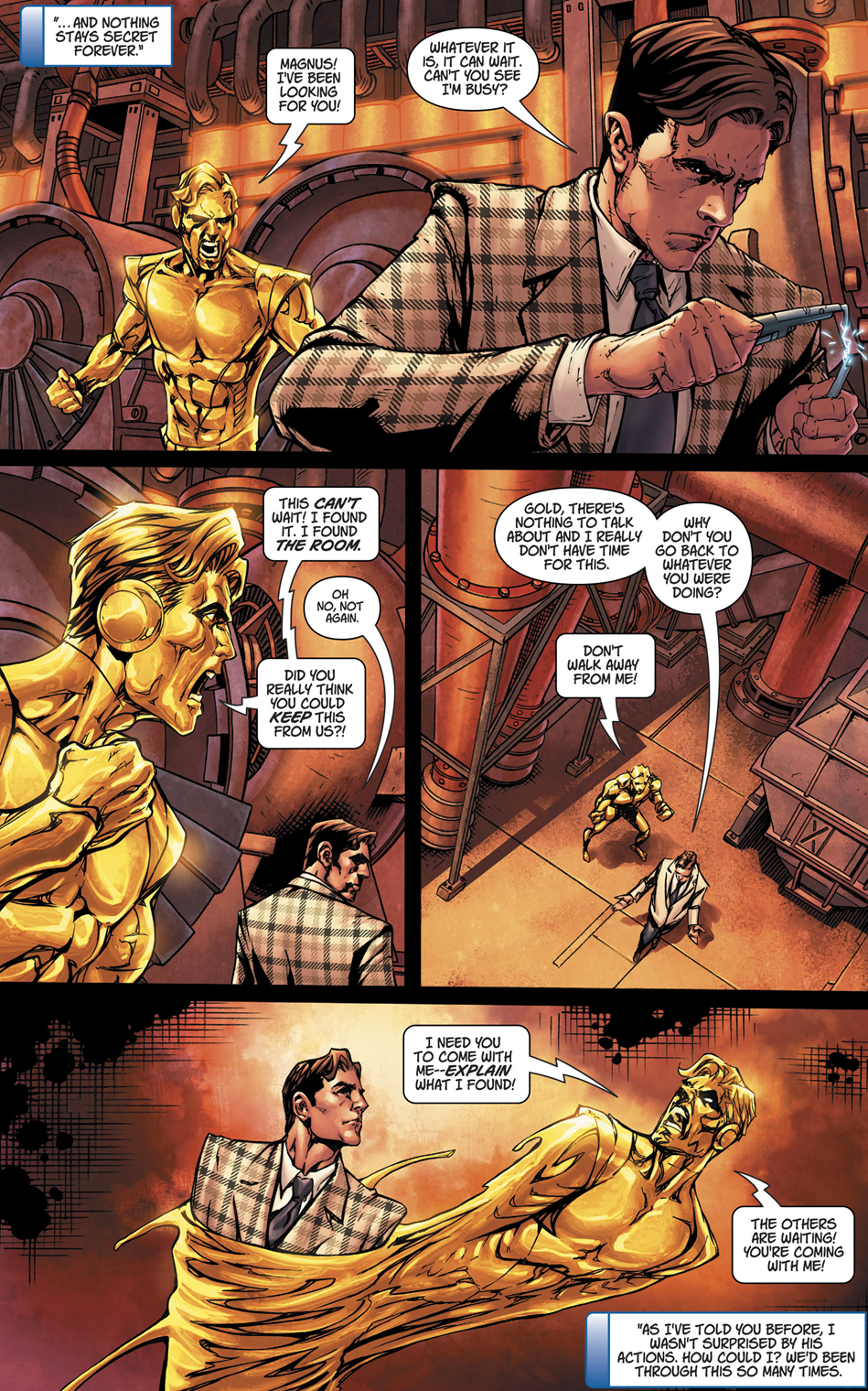 Not only are his characters well drawn, but the scenery is as well thanks to Matthew Wilson’s colors. Wilson does an amazing job of giving each scene life through his use of deep reds, putrid yellow-greens and cold tones when things happen in the Tower. He always elicits an eerie feeling of darkness through his colors and no location feels safe. Even in the scenes that take place in the day time, light colors are used to lure the reader into a false sense of security before the tables are turned and the pages are colored with an intense orange for the action.