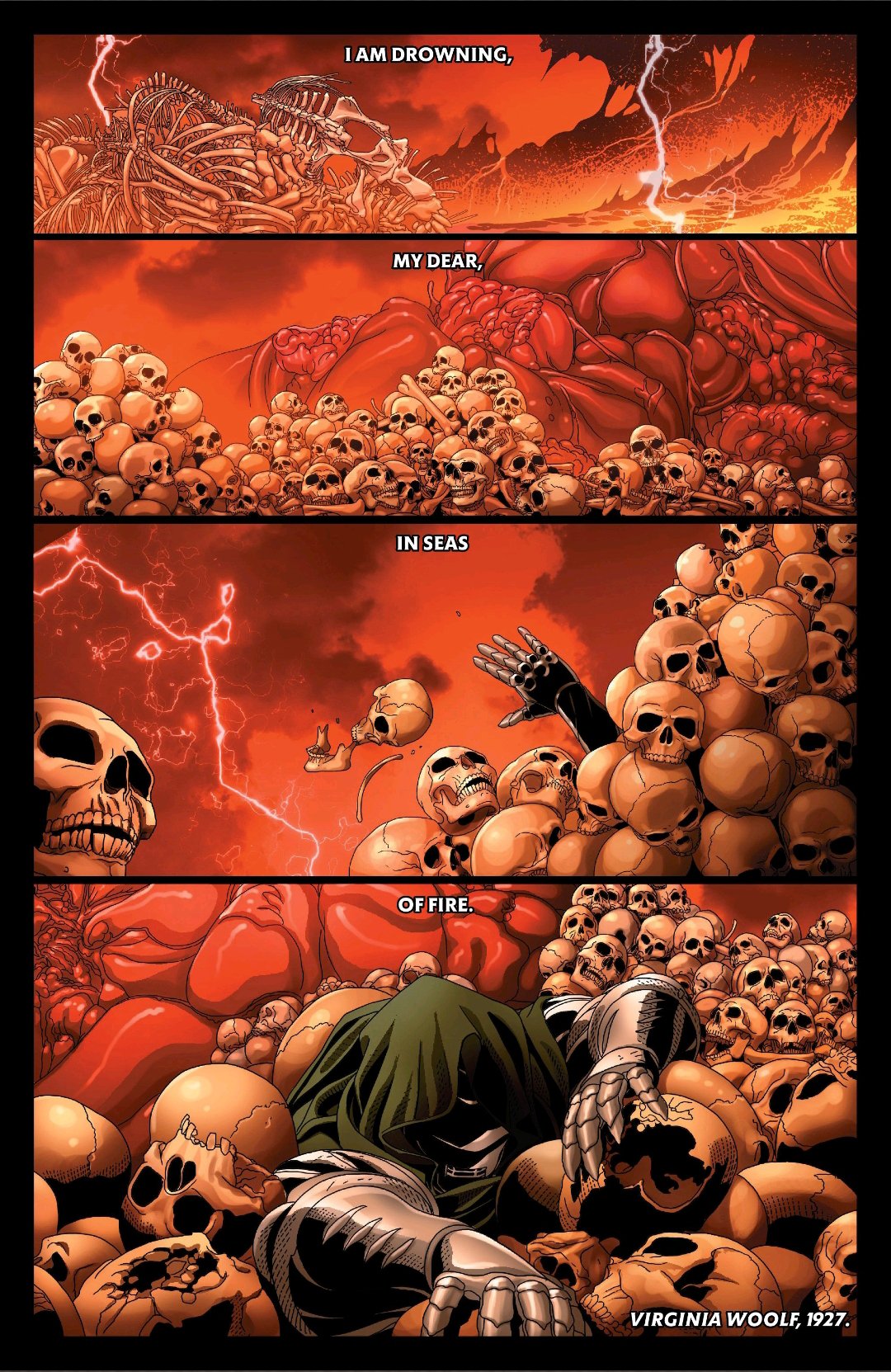 This story also couldn’t have been told without Rob Leigh’s amazing lettering. The way that we can distinguish between Manhattan’s dialogue, feel the weight of every character’s words and the bubble placement shows a level of skill that allows us to enjoy the flow of dialogue without losing any of the art.