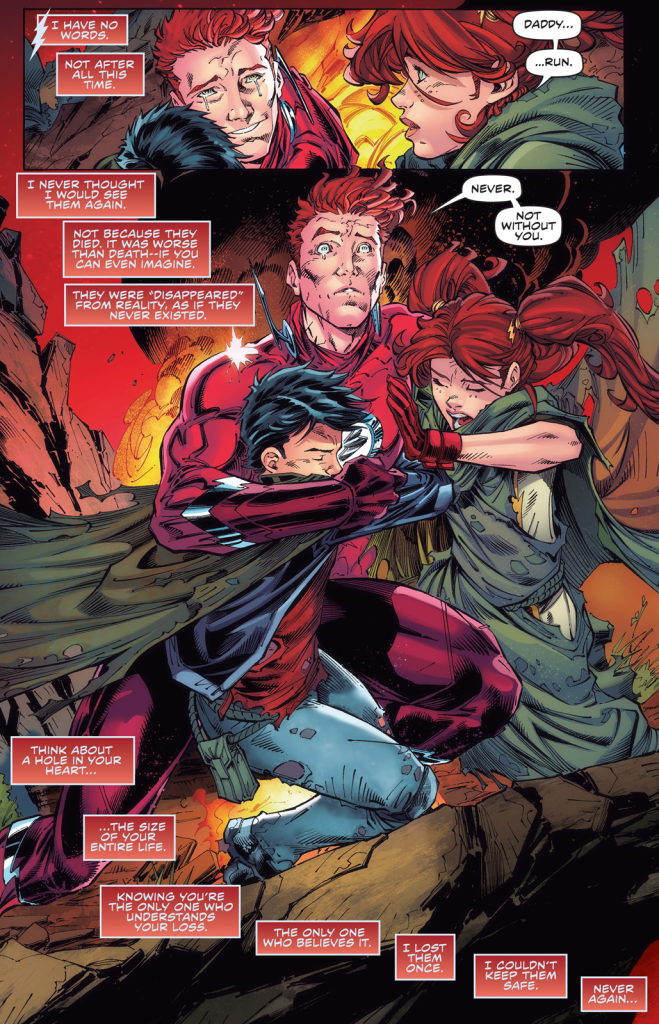 When DC rebooted after the New 52, Wally West was posited as the man who would be the hope that the dreary universe needed after five long years of depressingly dark and gritty stories. Wally’s return was also a return to a lighter, more heroic universe for a short while. Even though he and his wife, Linda Park, were no longer together and his kids were lost SOMEWHERE, potentially in the Speed Force, Wally never gave up hope of finding whoever messed with the universe and bringing them to justice.